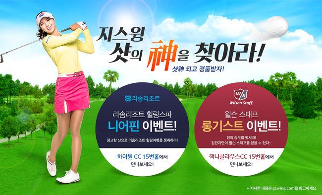 18일부터 7월 15일까지 진행되는 "삿의 神을 찾아라" 이벤트는 '윌슨 스태프와 함께하는 롱기스트 이벤트'와 '리솜리조트 힐링 스파 니어핀 이벤트' 두 가지로 진행된다. 이번 이벤트는 전국 지스윙 매장에서 지정된 이벤트 코스의 이벤트 홀을 이용하여 참여할 수 있으며 지스윙 회원이라면 누구나 참여 가능하다.