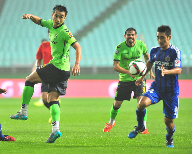 최강희 감독이 지휘하는 전북은 17일 전주월드컵경기장에서 열린 K리그 클래식 16라운드 울산과 홈경기에서 2-1로 역전승을 거뒀다. 전북은 양동현에게 선제골을 허용했지만, 에두와 이재명이 연속골을 넣어 승부를 뒤집었다. 울산전 승리로 분위기를 반전시킨 전북은 11승 2무 3패(승점 35)로 선두를 독주했다.