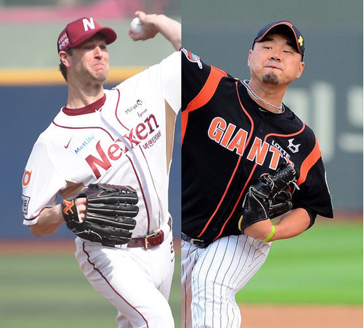 넥센 히어로즈 앤디 밴 헤켄과 롯데 자이언츠 송승준이 포크볼로 맞붙는다.