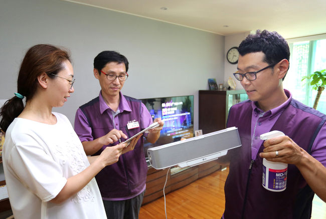 LG유플러스 고객인 박현정(40) 씨는 "요즘 메르스 예방을 어떻게 해야할 지 몰라 막연했는데, 서비스도 설치해 주고 안전한 살균제로 집안 곳곳을 소독해 줘 정말 좋았다"고 말했다.