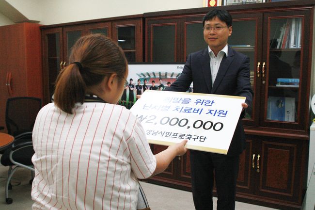 한편, 시민구단의 롤모델을 만들어가고 있는 성남은 지난 4월 '희귀성 난치병 어린이돕기 1004 걷기대회'에 참가하는 등 지역 내 희귀난치성 질환을 앓고 있는 아이들에게 지속적인 관심을 가져왔다. 이번 기회를 통해 희귀성 난치병을 가진 지역의 어린이들을 꾸준히 후원한다는 계획이다.