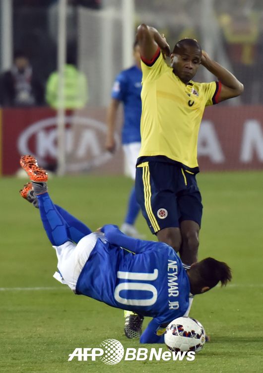 브라질은 18일(한국시간) 오전 칠레 산티아고에서 열린 2015 코파아메리카 C조 조별리그 2차전서 콜롬비아에 0-1로 패했다. 이로써 브라질은 콜롬비아(이상 승점 3)와 동률을 이뤘지만 다득점에 앞서 2위에 자리했다. 1경기를 덜 치른 베네수엘라(승점 3)가 골득실 앞선 선두에 위치했다.