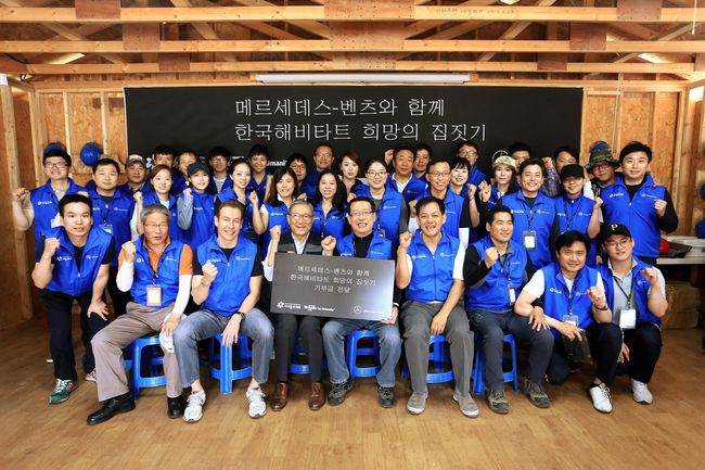 벤츠코리아의 임직원들이 저소득층 가정의 집을 짓는 해비타트 봉사활동에 직접 참여, 기부금도 마련해 전달했다.