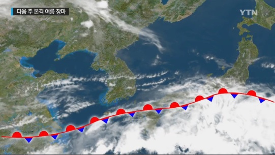 장마전선은 다음 주 후반 먼 남해상으로 물러나 다음 달 상순쯤 다시 북상할 것으로 보인다.