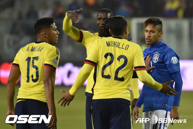 브라질은 18일(한국시간) 오전 칠레 산티아고에서 열린 2015 코파아메리카 C조 조별리그 2차전서 콜롬비아에 0-1로 패했다. 이로써 네이마르는 베네수엘라와의 조별리그 최종전서 뛸 수 없게 됐다.