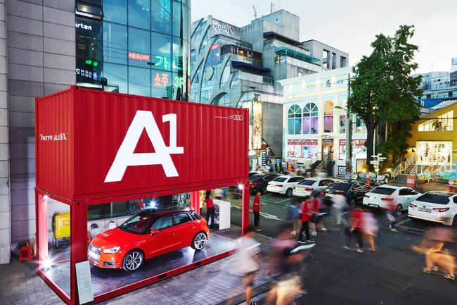 아우디가 소형 '뉴 아우디 A1' 출시를 맞아 서울의 20~30대 왕래가 잦은 4군데서 전시 이벤트를 펼친다.
