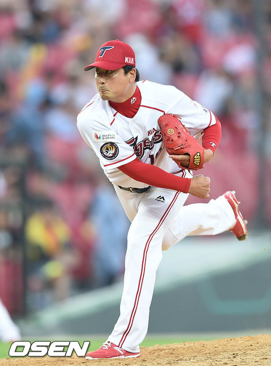 KIA 타이거즈 베테랑 투수 최영필(41)이 호투를 펼치며 구원승을 수확했다. 경기 초반 실점으로 어려워진 경기에서 팀의 연패를 막은 것도 최영필이었다.