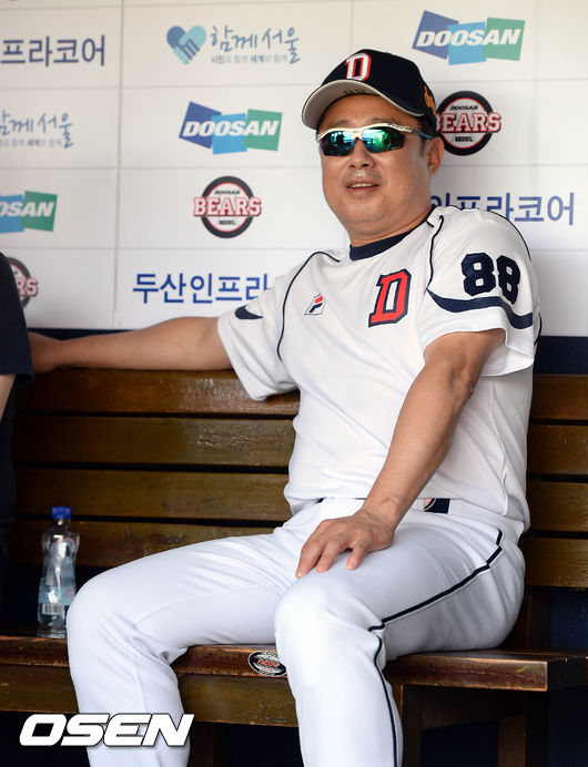 21일 오후 서울 잠실야구장에서 열린 '2015 타이어뱅크 KBO 리그' 두산 베어스와 롯데 자이언츠의 경기, 경기시작전 두산 김태형 감독이 인터뷰에 임하고 있다.
