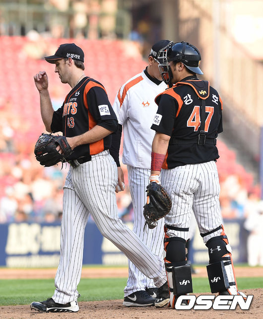 4회말에는 2사에 김현수의 우월 솔로홈런까지 터졌다. 5회말에는 선두 오재원의 좌전안타와 1사 후 나온 허경민의 우전안타와 최재훈의 중견수 플라이, 허경민의 도루로 2, 3루 위기에 몰린 뒤 김재호의 2타점 중전 적시타에 실점이 7점으로 불어났다.