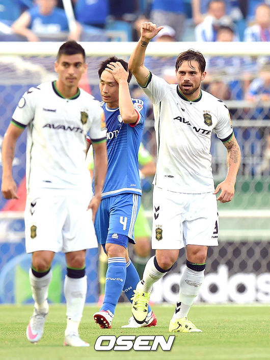 수원도 곧바로 만회골을 터트렸다. 중원에서 전북이 패스 미스를 하자 정대세가 낚아챘다. 이후 문전으로 달려드는 산토스가 이어받고 가볍게 차 넣으며 전반 25분 1-1, 동점을 만들었다.