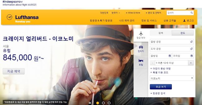 루프트한자 홈페이지 캡처.