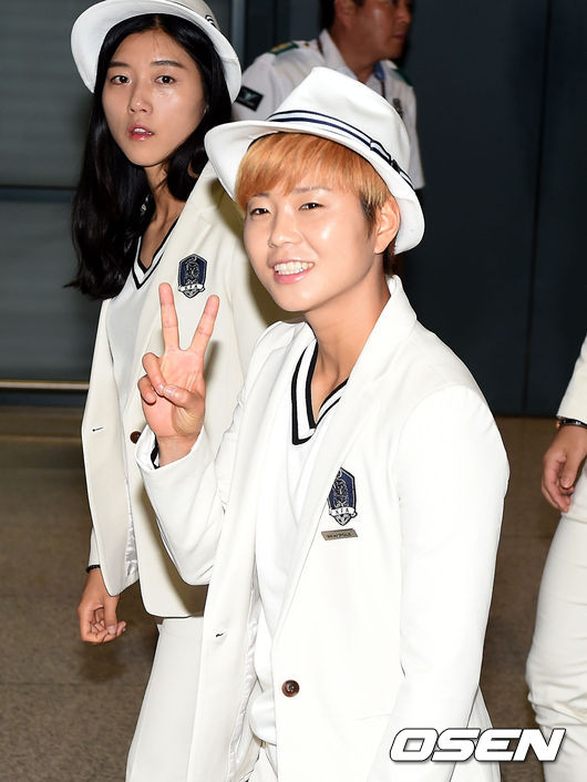 한국 여자축구 사상 월드컵 첫 승과 16강 진출에 성공한 윤덕여호가 24일 인천공항을 통해 금의환향했다. 여자축구대표팀은 캐나다에서 열린 2015 국제축구연맹(FIFA) 여자 월드컵 16강에 올랐다.