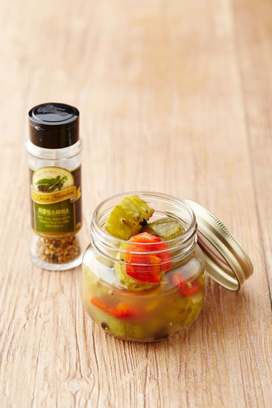 피클을 담글 때는 설탕, 콘스타치, 식초물, 생강즙, 각종 향신료를 모두 넣고 끓이는 과정이 필요하다. 이때 재료를 배합하는 비율을 맞추는 것이 부담스럽거나 보다 속성으로 피클을 완성하고 싶다면 피클초를 구입하는 것도 방법이다.