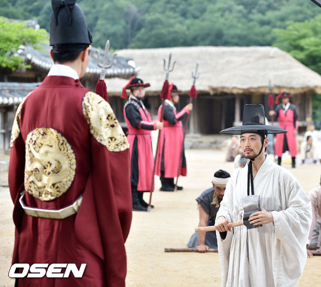 25일 오후 경기도 용인시 처인구 백암면 용인 문화동산 MBC드라미아에서 진행된 MBC 월화드라마 '화정' 현장공개 행사, 차승원과 김재원이 연기를 펼치고 있다.