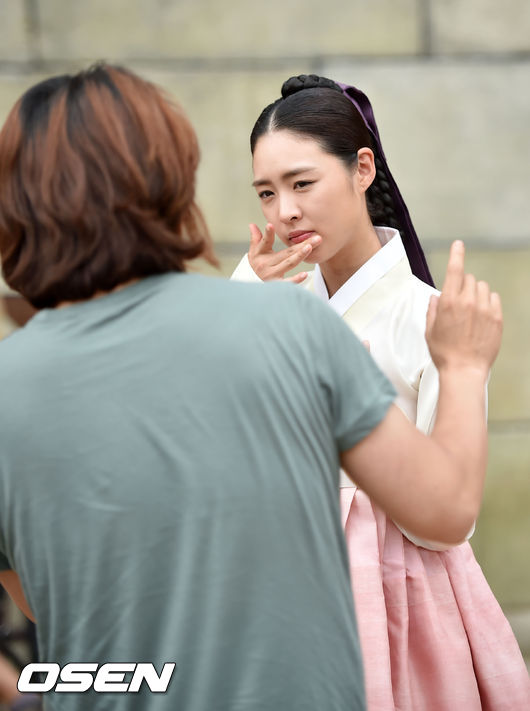 25일 오후 경기도 용인시 처인구 백암면 용인 문화동산 MBC드라미아에서 진행된 MBC 월화드라마 '화정' 현장공개 행사, 이연희가 최정규 PD와 얘기를 나누고 있다.