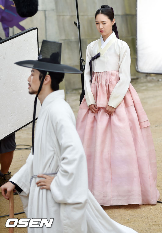 25일 오후 경기도 용인시 처인구 백암면 용인 문화동산 MBC드라미아에서 진행된 MBC 월화드라마 '화정' 현장공개 행사, 이연희가 김재원을 바라보며 내면연기를 펼치고 있다.
