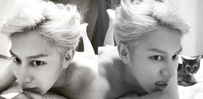 공개된 사진 속 김희철은 침대에 엎드려 카메라를 응시하고 있다. 상의를 탈의한 그는 커다란 눈망울과 오똑한 콧날을 자랑하듯 옆선을 오른쪽, 왼쪽 번갈아가며 자랑했다. 특히 두 번째 사진에서는 고양이와 함께 새침한 표정을 선보이기도 했다.