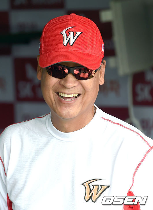 경기전 SK 김용희 감독이 취재진과 이야기를 나누고 있다.