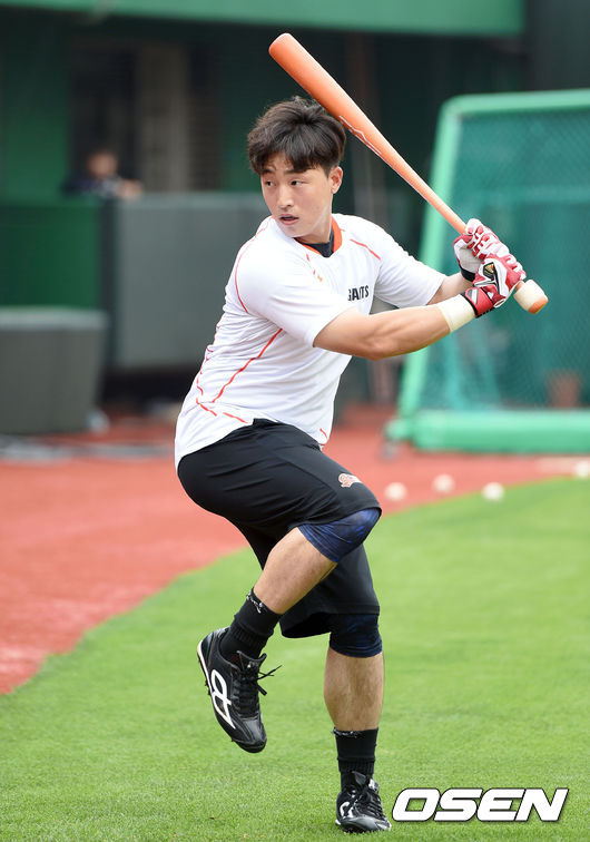 26일 오후 부산 사직야구장에서 열릴 '2015 타이어뱅크 KBO리그' 롯데 자이언츠와 넥센 히어로즈의 경기에 앞서 롯데 손아섭이 타격 훈련을 하고 있다.