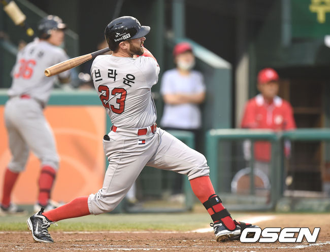 SK 외국인 선수 앤드류 브라운(31)이 불운에 울었다. 훈련 중 타구에 맞는 보기 드문 일이 벌어졌다.