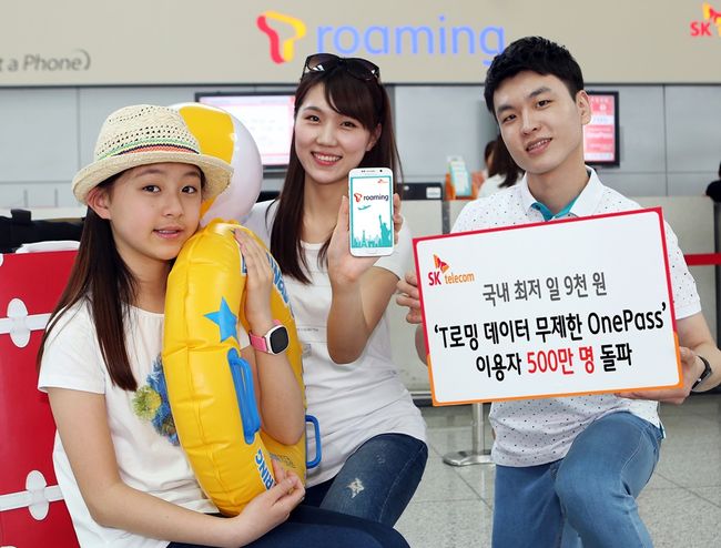 SK텔레콤(대표이사 사장 장동현, www.sktelecom.com)은 전세계 144개국에서 국내 최저 일 9000원(부가세 별도)에 데이터로밍을 무제한으로 이용할 수 있는 'T로밍 데이터무제한 OnePass'의 누적 이용자수가 출시 4년 만에 500만 명을 돌파했다고 밝혔다.