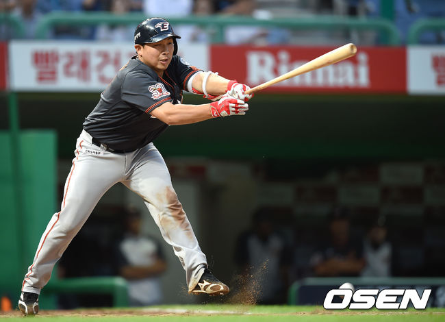 4회초 1사 1루 한화 허도환이 타격을 하고 있다.