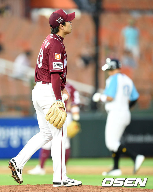 3회말 무사 만루에서 넥센 김택형이 밀어내기 볼넷을 허용하고 있다.