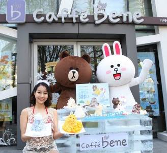 최근에는 애니메이션 캐릭터만큼이나 메신저 캐릭터의 인기가 대단하다 이에 커피전문점 카페베네는 네이버의 글로벌 모바일 메신저 '라인(LINE) 프렌즈'와 손잡고, '카페베네 눈꽃빙수 8종'을 출시해 이색 프로모션을 진행 중이다.