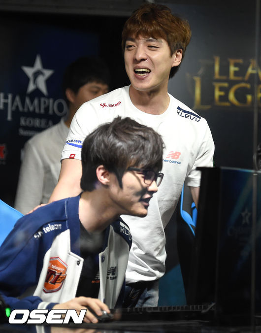 SK텔레콤은 27일 서울 용산 온게임넷 e스포츠 상설경기장에서 열린 '2015 스베누 LOL 챔피언스(이하 롤챔스)' 코리아 서머 1라운드 진에어와 경기서 2-0으로 승리, 1라운드 9전 전승의 대업을 완성했다.