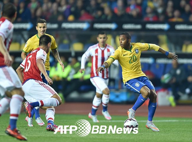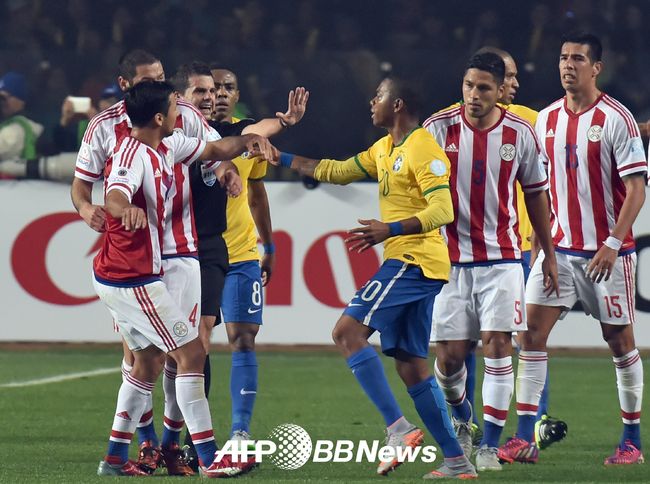 파라과이의 반격도 매서웠다. 산타 크루즈가 선봉에 섰다. 전반 34분 아크 서클 왼쪽에서 날카로운 중거리 슈팅을 때렸지만 골문을 살짝 벗어났다. 브라질이 파라과이에 1-0 앞선 채 전반을 마감했다.
