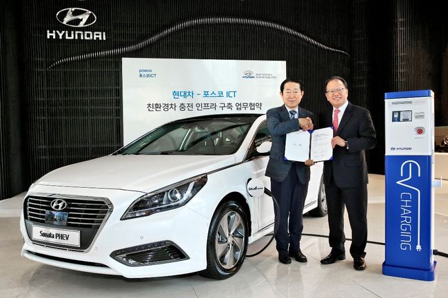 현대차 관계자는 “이번 포스코ICT와의 협력을 통해 국내 친환경차 시장 확대를 앞당길 수 있을 것으로 기대한다”며 “내달 출시를 앞두고 있는 쏘나타 플러그인 하이브리드를 비롯해 차세대 친환경차 개발에 지속적인 노력을 투자하고 인프라 구축에도 앞장설 것”이라고 밝혔다.