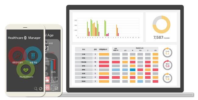 이번에 KTH가 공급하는 '임직원 건강매니저'는 종합 검진 결과를 기반으로 임직원들의 건강 상태를 분석하여, 직원 개인별 최적화된 맞춤 처방과 함께 다양한 관리 프로그램을 통해 지속적으로 건강을 관리해주는 서비스이다. 임직원 개개인이 활용할 수 있는 건강관리 앱과 기업이 임직원 건강을 관리할 수 있는 분석 리포트 서비스로 구성되어 있다.