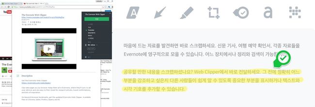 개인 소장용 스크랩뿐만 아니라 웹 클리퍼에서 바로 공유할 수 있는 기능도 추가됐다. 의견을 덧붙이고 싶은 경우 코멘트와 시각 기호를 추가해 다른 사람들이 확인했으면 하는 내용을 정확하게 표시하여 공유할 수도 있다. 또 스크랩 화면에서 곧바로 노트북과 태그를 지정해 스크랩을 정리할 수 있다. 더 많은 정보를 저장할수록 웹 클리퍼가 저장될 노트북과 태그를 더욱 정확하게 예측한다. 자주 스크립하면 에버노트 웹 클리퍼를 길들일 수 있다.