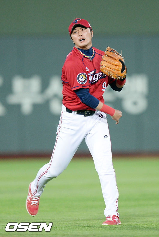 KIA가 두산에 2대 1로 앞서나가던 8회초 2사 상황. 김민우는 자신의 머리 위로 넘어가는 두산 정수빈의 타구를 높이 점프하며 잡아냈다. 앞선 이닝에서의 수비 실책을 잊게 만든 김민우의 점프캐치는 발 빠른 타자주자 정수빈의 출루를 막아내며 스틴슨의 투구를 마무리하게 해주는 수비였다.