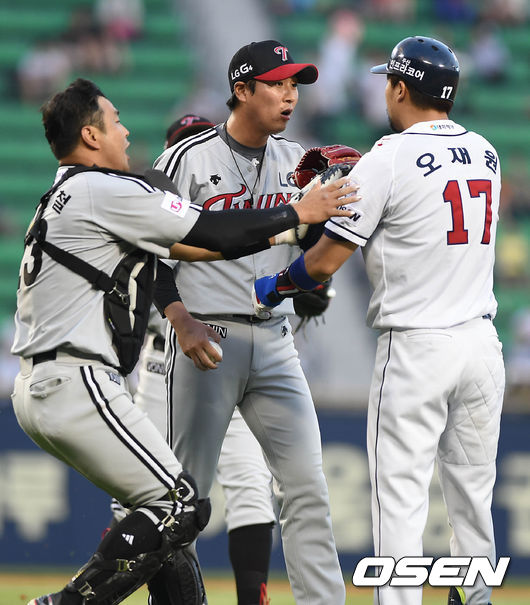 문제는 그 뒤에 생겼다. 1루로 간 오재원과 마운드에 있던 우규민 사이에 작은 언쟁이 오갔고, 포수 최경철이 이를 말리는 사이 양 팀 벤치에 있던 선수들이 모두 쏟아져 나왔다. 그러나 시간이 얼마 지나지 않아 큰 문제 없이 모두 벤치로 돌아가며 상황은 일단락됐다.