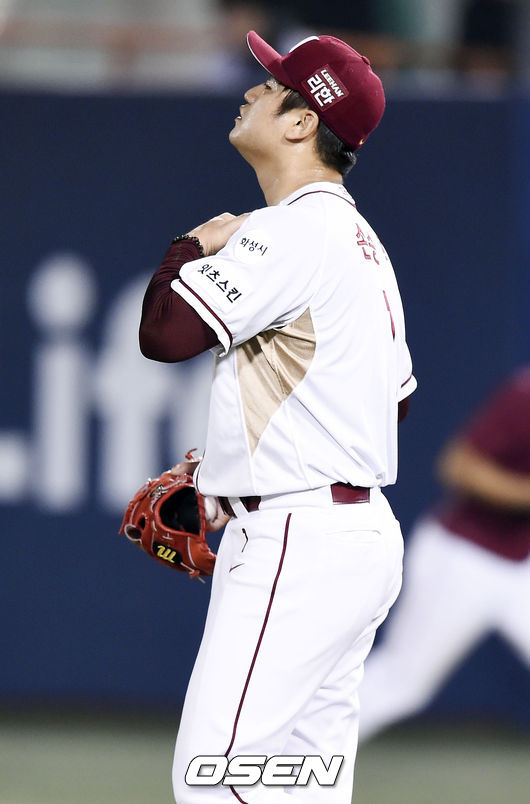 임창용은 2사 주자없는 가운데 김민성의 좌익선상 2루타에 이어 윤석민의 중월 투런 아치(비거리 125m)를 얻어 맞으며 10-10 동점을 허용했다.