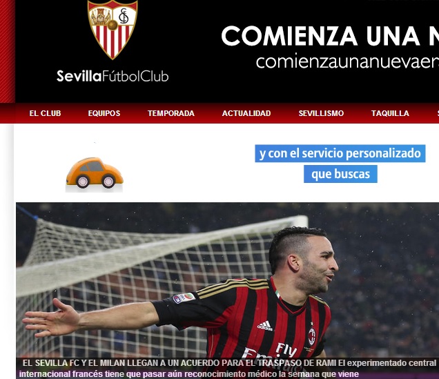 세비야는 1일 구단 공식 홈페이지를 통해 "라미의 이적에 대해 밀란과 합의했다"고 발표했다.