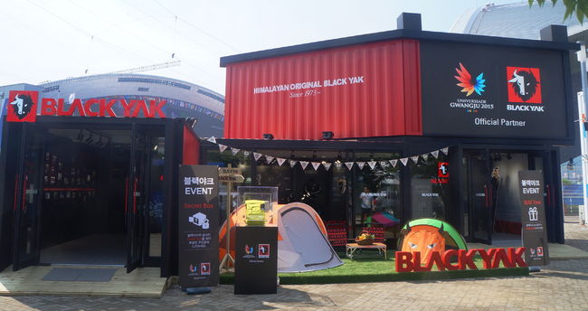 글로벌 아웃도어 기업 ㈜블랙야크(대표이사 강태선)는 2일, 2015광주하계유니버시아드대회(이하 광주U대회) 개막에 맞춰 대회가 진행되는 광주월드컵경기장 내 마켓스트리트에서 블랙야크 브랜드 홍보관을 운영한다고 밝혔다.