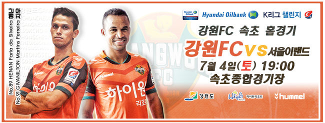강원FC는 오는 7월 4일 오후 7시 속초종합경기장에서 열리는 서울이랜드와 K리그 챌린지 20라운드 홈경기를 ‘교동 동민의 날’로 개최된다.