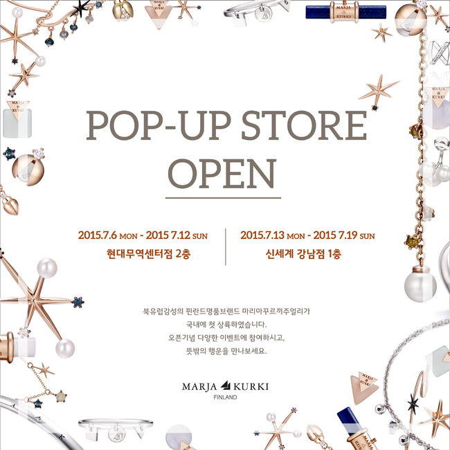 핀란드에서 탄생한 디자인 주얼리 브랜드 ‘마리아꾸르끼’ (MARJA KURKI)가 현대백화점 무역점과 신세계 백화점 강남점에서 릴레이 팝업 스토어를 진행한다.