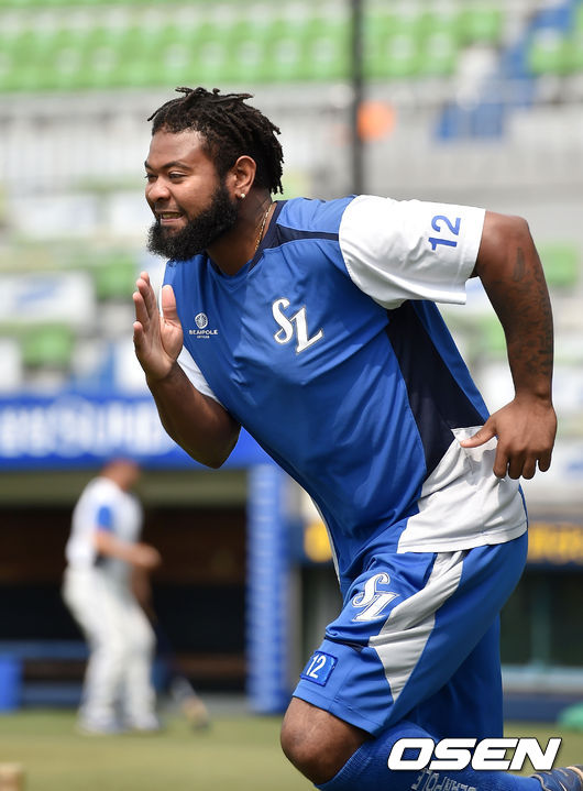 4일 오후 대구 대구시민운동장 야구장에서 '2015 타이어뱅크 KBO 리그' 삼성 라이온즈와 LG 트윈스의 경기가 열릴 예정인 가운데 삼성 나바로가 런닝 훈련을 하고 있다.