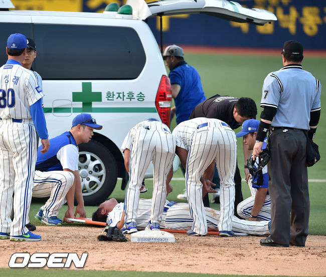 한동안 일어나지 못한 그는 결국 구장 밖에 대기 중이던 구급차를 타고 영남대병원으로 이송됐다. 박한이 대신 박찬도가 교체 투입됐다.