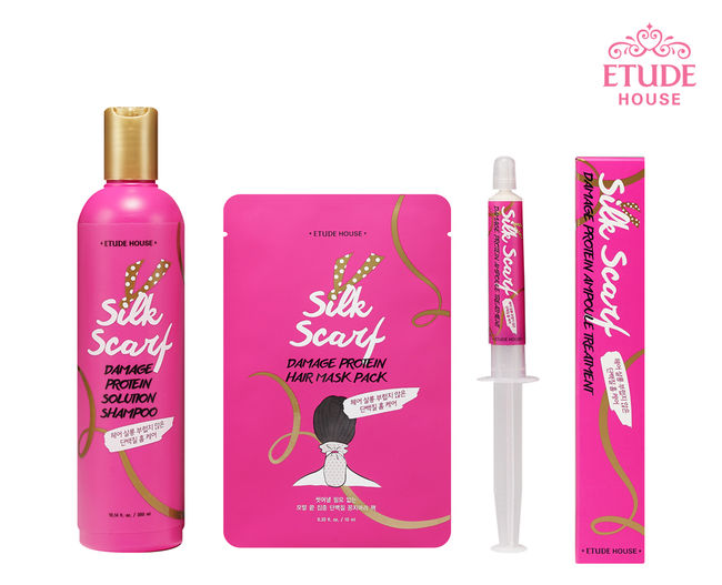 즐거운 화장놀이 문화를 전파하는 글로벌 메이크업 브랜드 에뛰드하우스(www.etude.co.kr)가 누구나 쉽고 간편하게 집에서 헤어 단백질 케어가 가능한 ‘실크 스카프 데미지 단백질’ 3종을 출시했다.