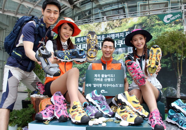 아웃도어 브랜드 네파(대표 박창근)가 6일 서울 중구 광화문 청계광장에서 산과 계곡에서 가볍고 자유로운 트레킹이 가능한 '멀티형 아쿠아슈즈' 출시 기념 행사를 진행했다.