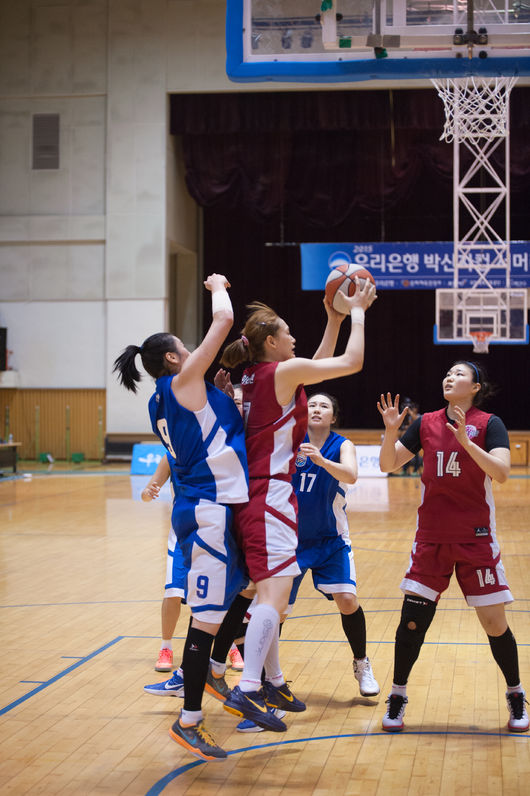 하나외환이 변칙 지역방어와 두 명의 이슬(강이슬+김이슬)을 앞세워 2015 우리은행 박신자컵 서머리그 첫 경기서 우리은행을 대파하는 이변을 일으켰다.