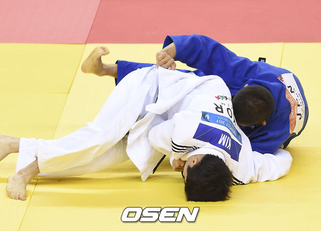 7일 오후 광주 염주빛고을체육관서 열린 '2015 광주하계유니버시아드대회' 유도 남자 60kg급 결승전에서 김원진이 유효 득점을 올리고 있다 .