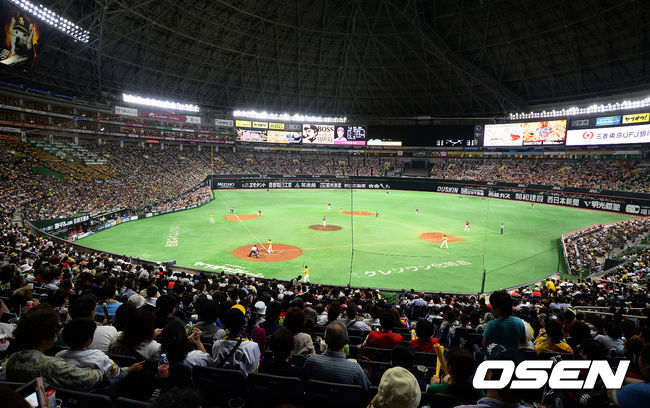 7일 오후 일본 후쿠오카 야후오크돔에서 소프트뱅크 호크스와 라쿠텐 골든이글스의 경기, 야후오크돔이 관중들로 가득차있다.