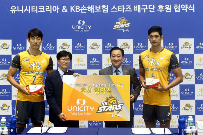 남자 프로배구 KB손해보험 스타즈(단장 허정수)가 8일 KB인재니움 수원 체육관에서 글로벌웰니스 기업 ‘유니시티 코리아’와 후원협약을 체결했다.