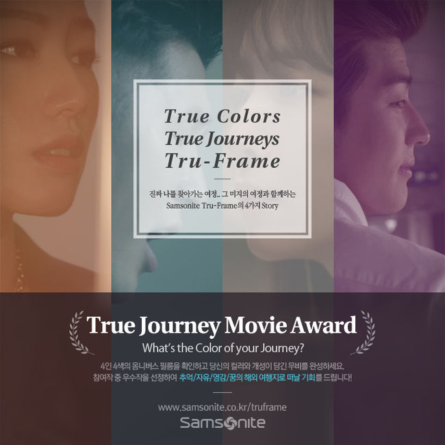 '트루 져니 무비 어워드'는 쌤소나이트가 트루프레임 출시를 맞아 전개하는 '트루 컬러, 트루 스토리' 통합 캠페인의 일환으로 마련된 이벤트로, 이 달 말까지 약 한 달간 트루프레임 마이크로사이트(www.samsonite.co.kr/truframe)를 통해 참여할 수 있다.