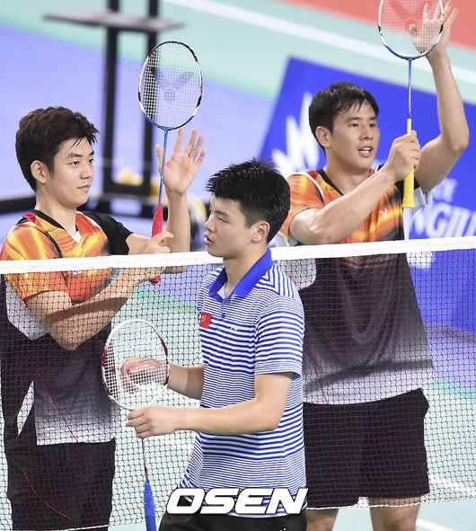 첫 번째 주자는 혼합복식의 김기정(25, 안동대) 신승찬(21, 건국대) 조는 중국의 장웬, 오동니 조를 세트스코어 2-1로 제압했다. 첫 세트를 15-21로 내준 한국은 2세트(21-17)와 3세트(21-7)를 내리 따내 첫 경기를 승리로 장식했다.
